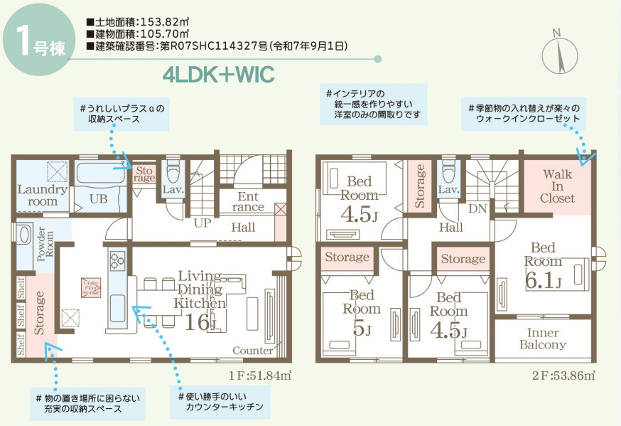 | 建物面積/坪数 | 105.70㎡ / 31.97坪 | 土地面積/坪数 | 153.82㎡ / 46.53坪 |